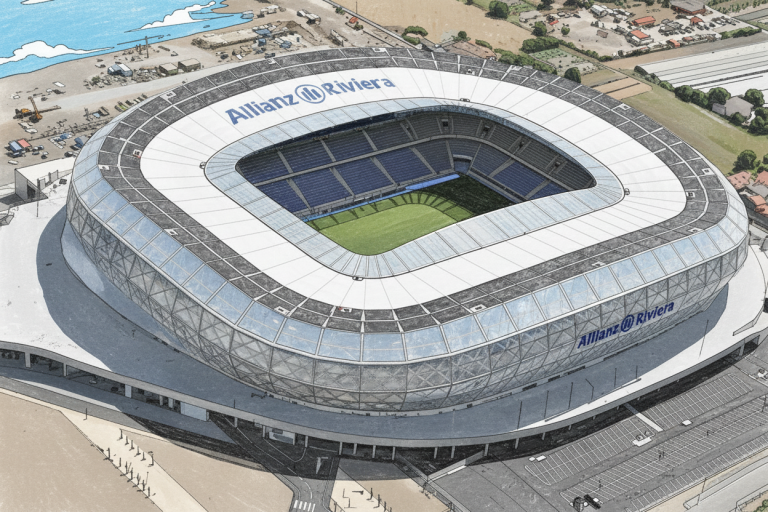 Der Allianz Riviera ist das Heimstadion des OGC Nizza im Westen der Stadt Nizza und bietet Platz für 34.616 Zuschauer. Eröffnet 2013, zählt das Stadion zu den modernsten und nachhaltigsten Sportstätten Frankreichs. Besonders markant sind die innovative, umweltfreundliche Architektur sowie die vollständig überdachte Konstruktion, die optimale Sichtverhältnisse und hohen Komfort bietet. Trotz seiner modernen Bauweise fügt sich der Allianz Riviera harmonisch in die Umgebung ein und verfügt über eine zeitgemäße Infrastruktur mit sehr guter Sicht auf das Spielfeld von allen Plätzen. Zudem ist das Stadion mit einem modernen Hybridrasen ausgestattet und besitzt zahlreiche Zugangspunkte, die einen geordneten und effizienten Besucherfluss ermöglichen.