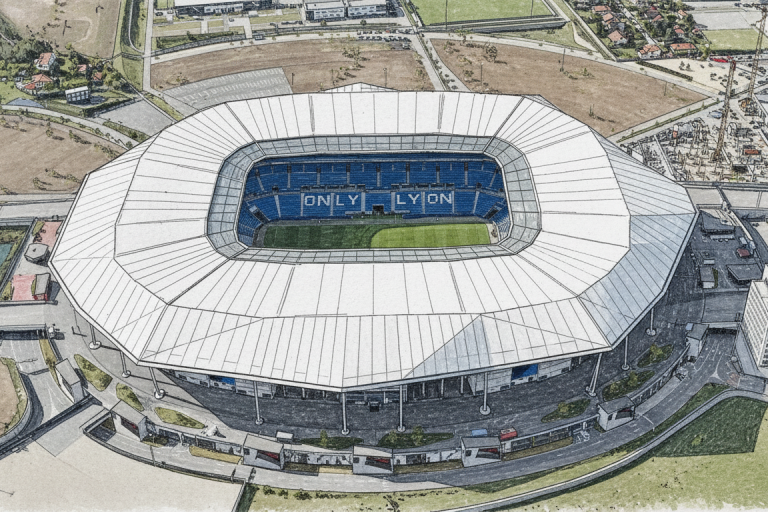 Der Groupama Stadium ist das Heimstadion von Olympique Lyonnais in Décines-Charpieu im Großraum Lyon und bietet Platz für rund 57.206 Zuschauer. Eröffnet 2016, zählt das Stadion zu den modernsten und innovativsten Sportstätten Frankreichs. Besonders markant sind die vollständig überdachte, moderne Stadionarchitektur sowie die klare, offene Konstruktion, die für hervorragende Sichtverhältnisse sorgt. Trotz seiner Größe bietet das Groupama Stadium eine hochmoderne Infrastruktur und eine ausgezeichnete Sicht auf das Spielfeld von allen Plätzen. Zudem verfügt das Stadion über einen modernen Hybridrasen sowie zahlreiche Zugangspunkte, die einen geordneten und effizienten Besucherfluss ermöglichen.
